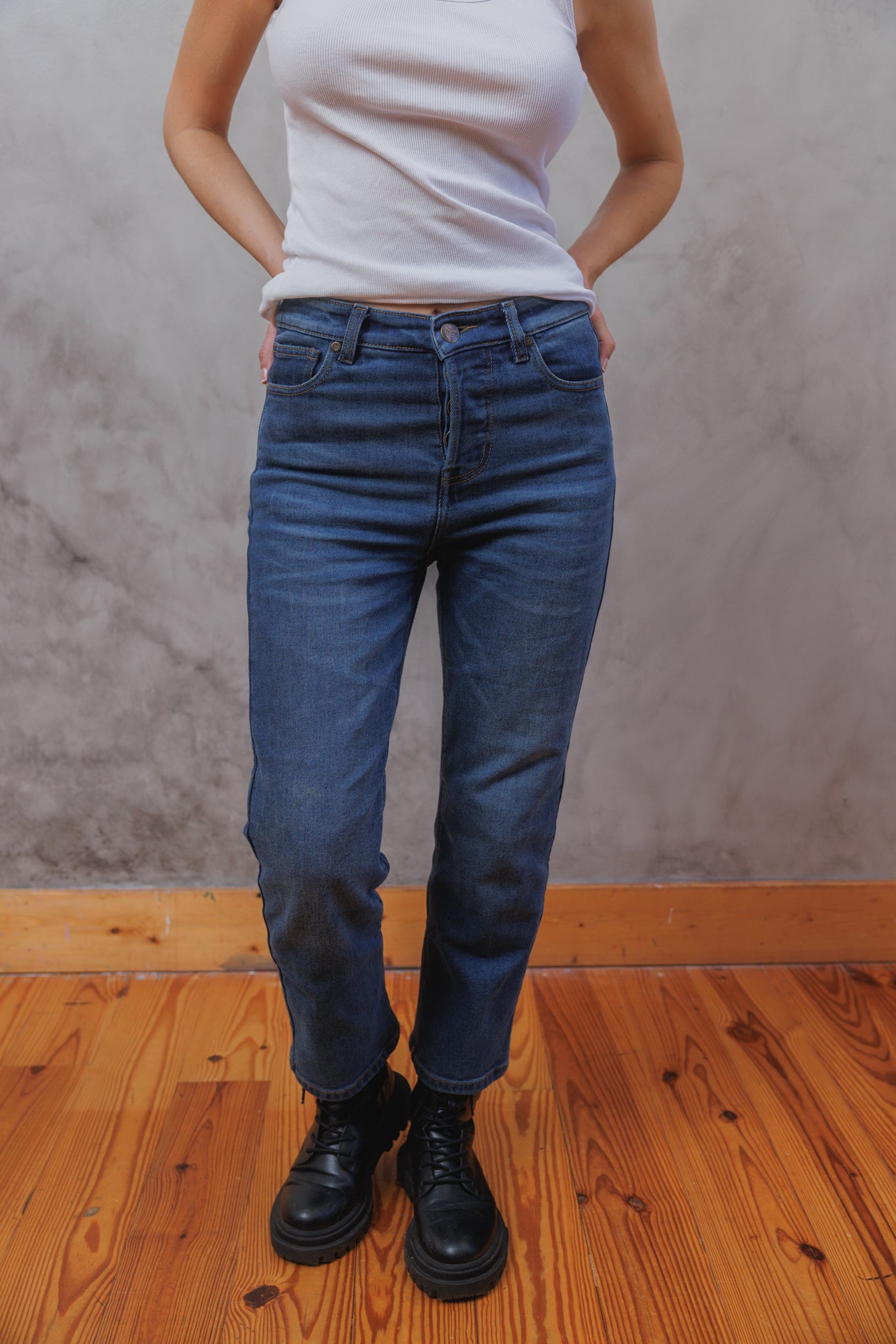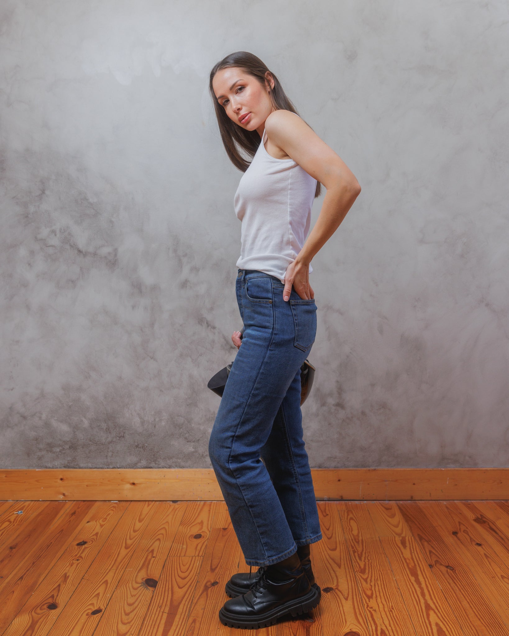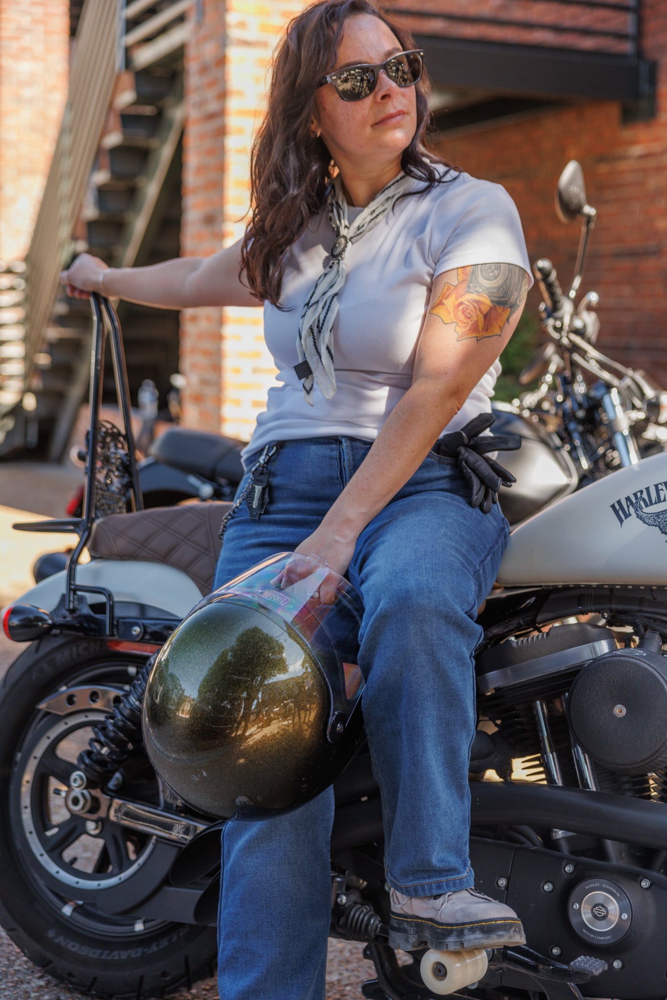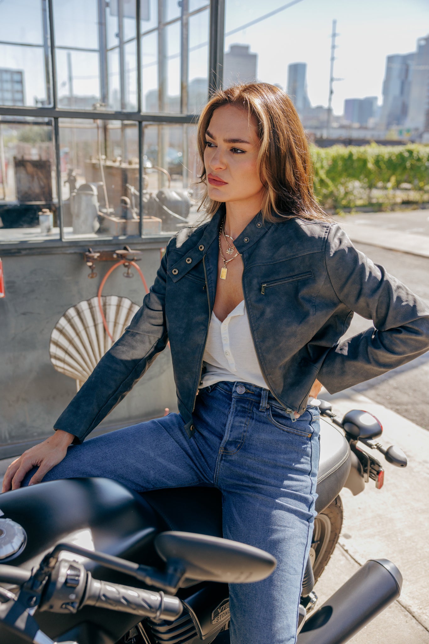The Francesca Moto Jeans are the ultimate staple piece for your wardrobe. Designed from patented Aramith fabric, the classic high waisted, straight legged blue jean is durably made. With a slightly cropped fit, it works perfectly with your riding boots or sneakers.